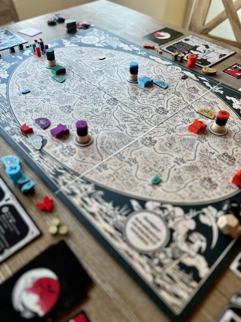 A good way to describe this game might be if Root and Magic: The Gathering had a gothic baby. It plays over four rounds and just exudes atmosphere and personality. Four rounds might sound short, but depending on player count, our games ran two to three hours. That will almost certainly speed up with experience, but the length feels just right. The rhythm of it, with the rising stakes and growing powers, lands perfectly.